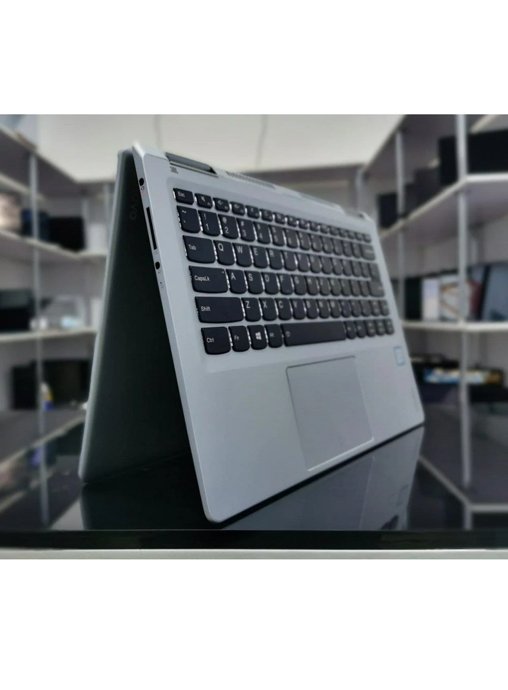 14" Full HD 1920 x 1080 10-point multitouch screen; 360-degree flip-and-fold design; LED backlight.